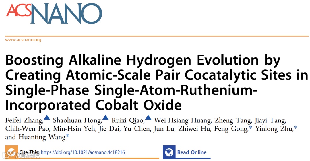 我们开发了一种单相单原子钌掺杂的氧化钴 Ru SA/Co3O4碱性HER电催化剂, 其中单原子钌位于氧化钴中的 Cooct 位点。该催化剂具有独特的原子级Ru−Co 双位点,双活性位点之间的协同相互作用有利于提高碱性 HER的催化效率。