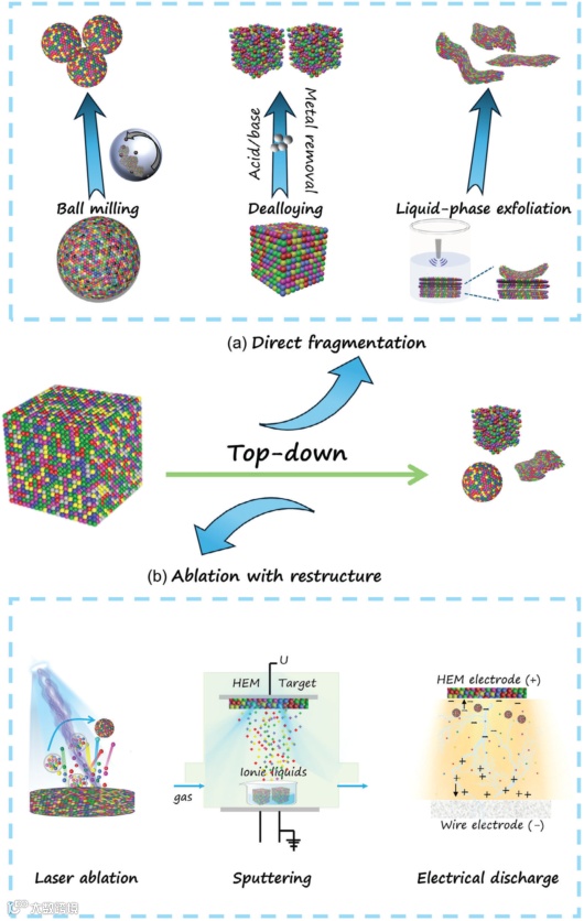 图:高熵纳米材料自上而下的合成方法。