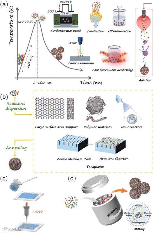图:高熵纳米材料合成策略及方法。