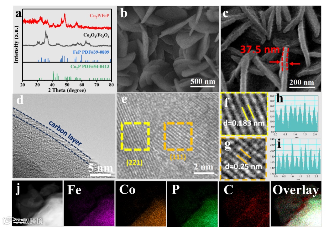 图1. 催化剂Co2P/FeP纳米片的制备与表征