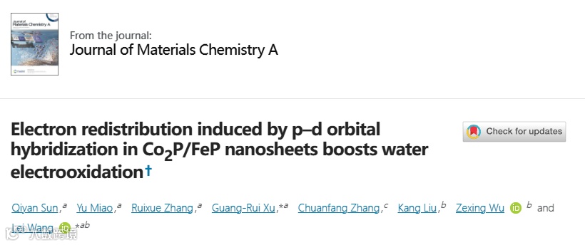 近日,基于此,青岛科技大学的王磊教授与徐广蕊副教授团队在国际知名期刊Journal of Materials Chemistry A上发表题为“Electron redistribution induced by p–d orbital hybridization in Co2P/FeP nanosheets boosts water electrooxidation”的论文。