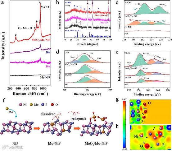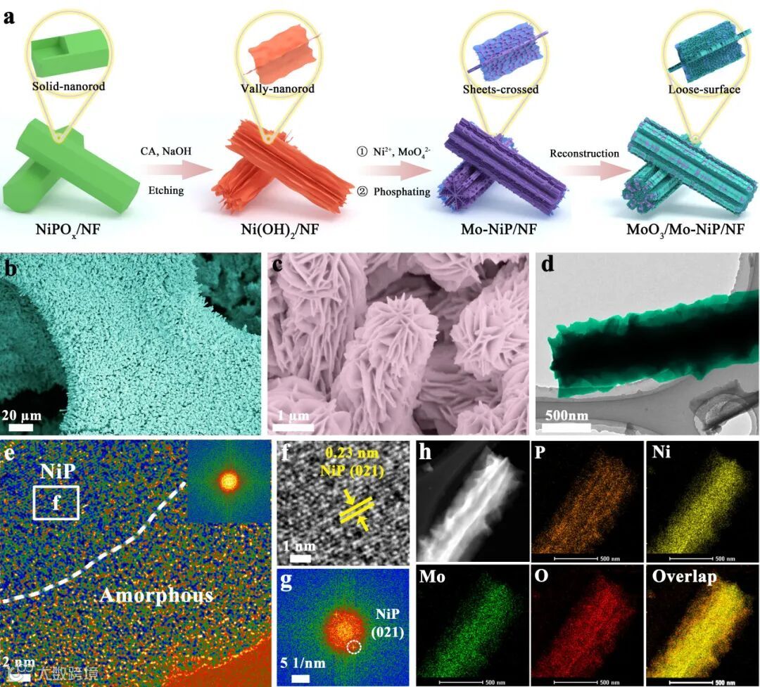 图2. Mo-NiP/NF预催化剂的合成和结构表征。