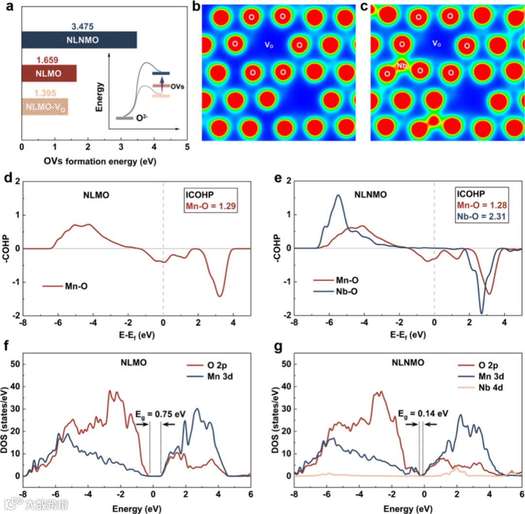 理论计算结果表明,Nb的存在是确保本征氧空位长期稳定的重要基石,并能抑制阴离子氧化还原介导的氧空位的形成和扩散。