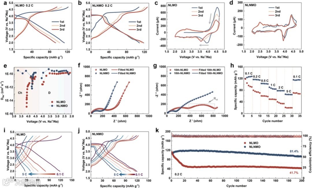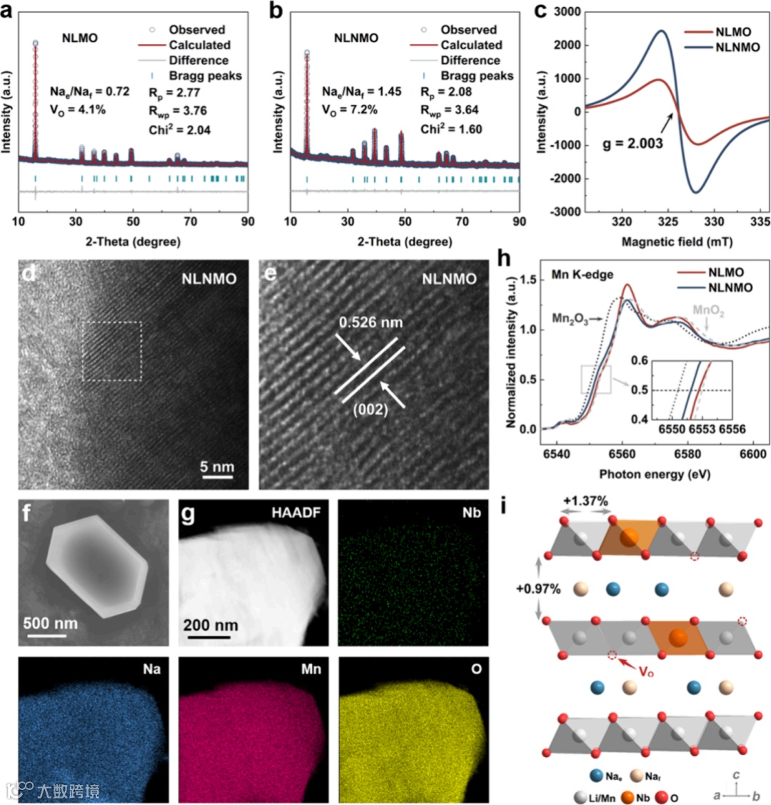 我们提出的优化氧空位并有选择性地引入高价态Nb5+的协同策略不仅能够抑制由不可逆氧释放引起的阴离子氧化还原介导的氧空位,还能够抑制TM迁移以及不可逆相变,最终实现综合电化学性能提升。
