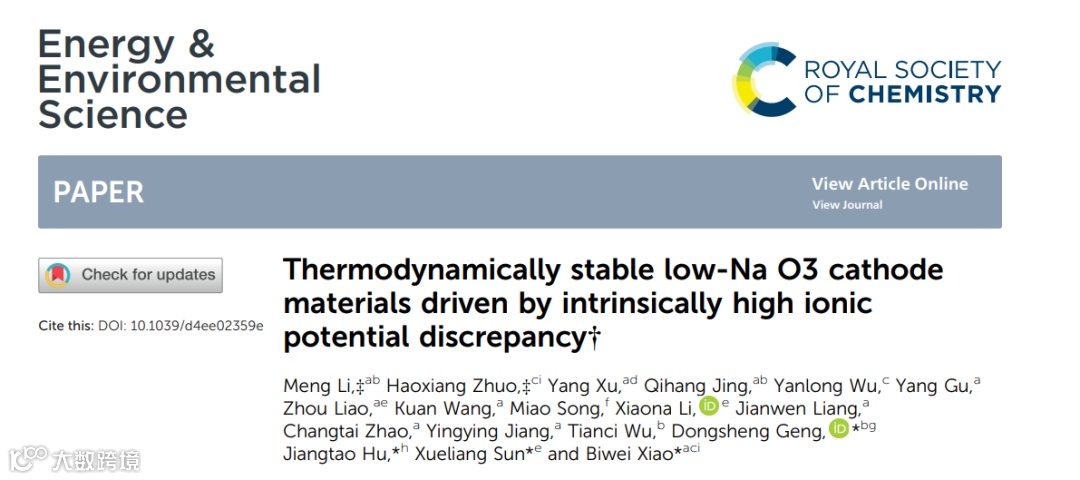 近日,来自有研(广东)新材料技术研究院的肖必威教授与北京科技大学,南京信息工程大学的耿东生教授,东方理工大学的孙学良教授以及深圳大学的胡江涛教授合作,在国际知名期刊Enregy & Environmental Science上发表题为“Thermodynamically stable low-Na O3 cathode materials driven by intrinsically high ionic potential discrepancy”的观点文章。该观点文章提出了一类新型低Na含量的O3类型层状材料,打破了容量,倍率及稳定性三者关系相互制约,团队对此类材料进行了详细的物理结构和电化学方面解析。