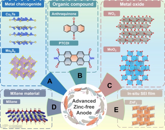 图1. 主要的无锌负极材料示意图。