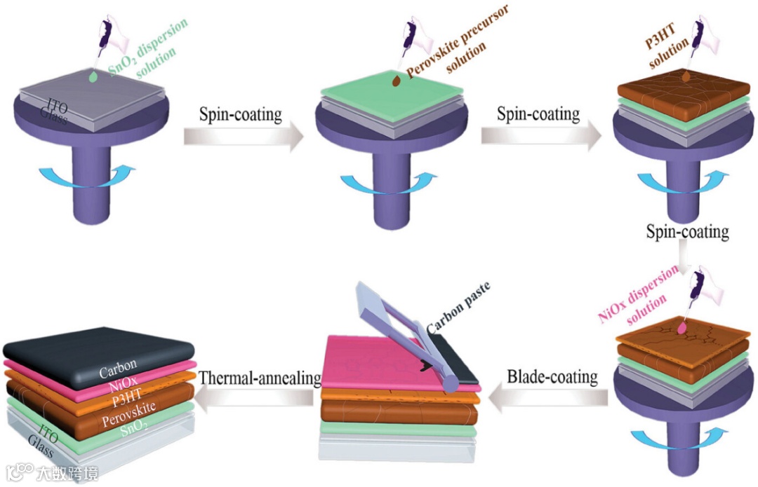目前,基于双层空穴传输层结构的碳电极钙钛矿太阳能电池由于其低成本和高稳定性逐渐受到研究学者的关注,其中聚(3-己基噻吩)(P3HT)更是在此类碳电极钙钛矿太阳能电池中起到重要的载流子输运和保护钙钛矿的重要作用。然而,半结晶聚合物P3HT的传统制备方法往往赋予其edge-on的分子排列,即烷基侧链直接接触钙钛矿层,导致钙钛矿/P3HT之间较差的电学接触。此外,传统制备方法使P3HT层呈现出较低的有序分子排列,在一定程度上削弱了其对下方钙钛矿层的深度缺陷钝化和疏水保护。因此,为了进一步提高碳电极钙钛矿太阳能电池的效率和稳定性,特别是对于大面积钙钛矿器件,通过调控半结晶聚合物的分子取向来微调其光电性能、缺陷钝化能力以及对钙钛矿层的保护能力显得尤为重要。