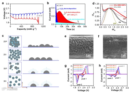 图6. Li||CC/Li2S8电池中 Li2S电化学沉积机理和反应动力学