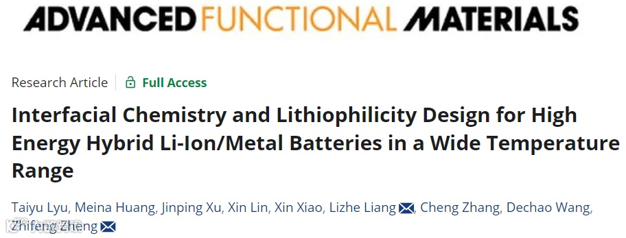 题目:界面化学和亲锂性设计用于宽温范围内高能混合锂离子/锂金属电池