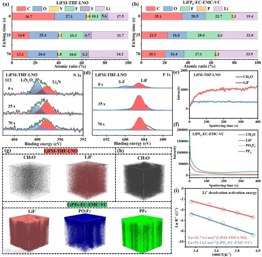 1M LiFSI-THF-0.5wt.%LiNO3弱溶剂化电解质诱导界面富含LiF/Li3N等无机成分,增强界面SEI膜强度,实现在快充和低温条件下Li离子快速传输和抑制锂枝晶生长。