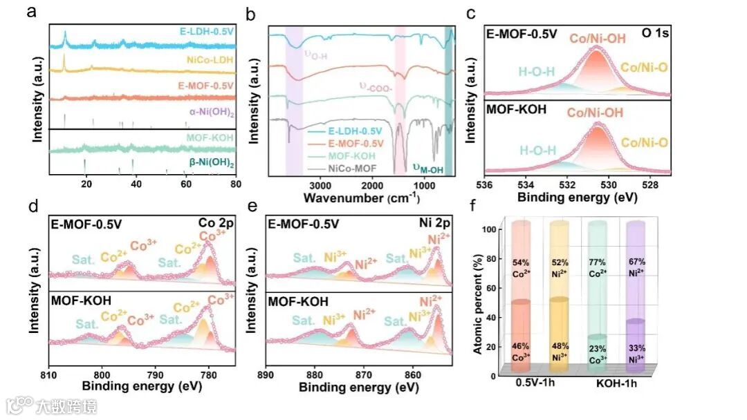 图2 E-MOF-0.5V和MOF-KOH的谱图表征