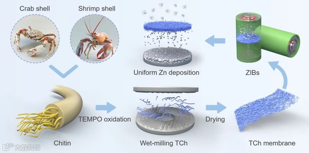 图1、甲壳素纳米纤维隔膜稳定锌离子电池负极策略。