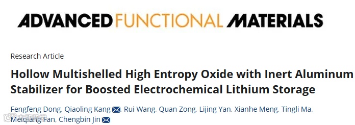题目:Hollow Multishelled High Entropy Oxide with Inert Aluminum Stabilizer for Boosted Electrochemical Lithium Storage