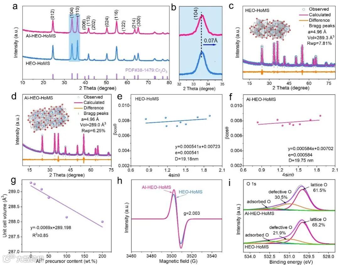 图4. Al-HEO-HoMS中的晶格畸变效应(氧空位)。