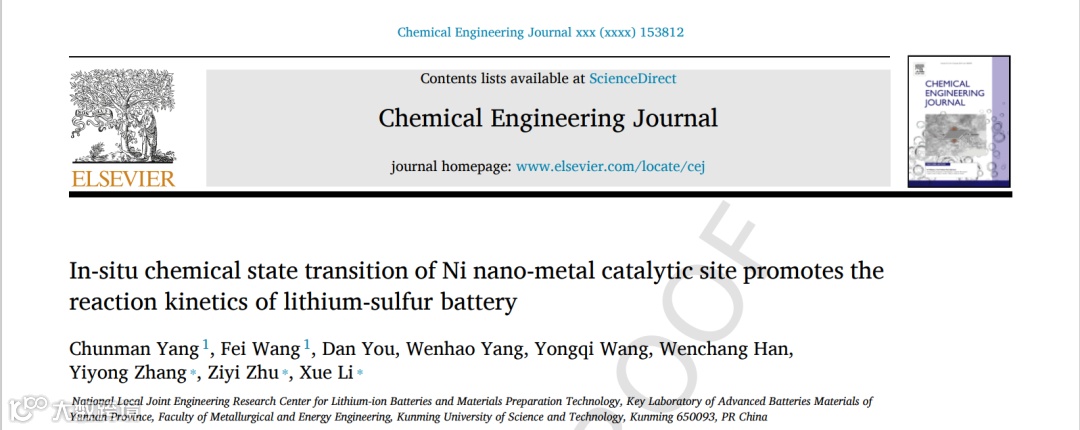 C. Yang, F. Wang, D. You, W. Yang, Y. Wang, W. Han, Y. Zhang, Z. Zhu, X. Li, In-situ chemical state transition of Ni nano-metal catalytic site promotes the reaction kinetics of lithium-sulfur battery, Chemical Engineering Journal (2024), doi: https://doi.org/10.1016/j.cej.2024.153812
