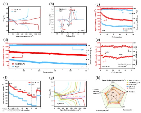 要点二:CBC@Ni复合材料表现出良好的高倍率长循环稳定性、并在高负载和低E/S比条件下性能依旧可观。