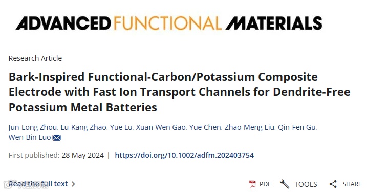 Bark-Inspired Functional-Carbon/Potassium Composite Electrode with Fast Ion Transport Channels for Dendrite-Free Potassium Metal Batteries.