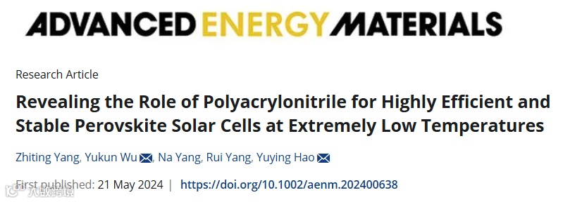 揭示聚丙烯腈在极低温度下诱导高效稳定钙钛矿太阳电池的作用机理