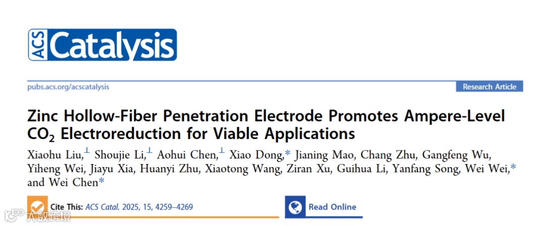 基于此,中国科学院上海高等研究院的魏伟团队陈为课题组,在催化知名期刊ACS Catalysis上发表题为“Zinc Hollow-Fiber Penetration Electrode Promotes Ampere-Level CO2 Electroreduction for Viable Applications”的研究文章。该研究文章设计了一种用于高效CO2电还原CO的纯锌中空纤维透散电极,分析电极结构设计与局部微环境调控的创新策略,为推进工业级CO2转化系统的高效运行提供了重要参考。