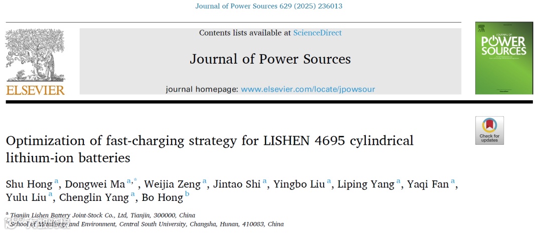 基于此,来自力神公司的洪树博士、马东玮博士与中南大学洪波教授合作,在国际知名期刊Journal of Power Sources上发表题为“Optimization of fast-charging strategy for LISHEN 4695 cylindrical lithium-ion batteries”的研究论文。该文章展示了由力神公司自主研发的具有18min以内快速充电能力的4695大圆柱电池,能量密度高达280Wh/kg,快充寿命超1200次@80%,相当于超过600000公里的行驶里程。并同时分析了4695 280Wh/kg大圆柱电池的快充优化策略和相应的失效机理分析,有力推进了46系大圆柱电池的商业化进程。