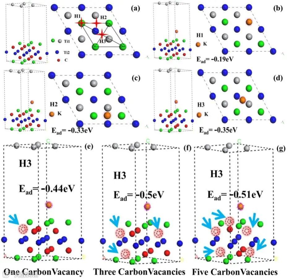 要点二:确定钾离子在六方孔洞MXene的最佳吸附位置和吸附量