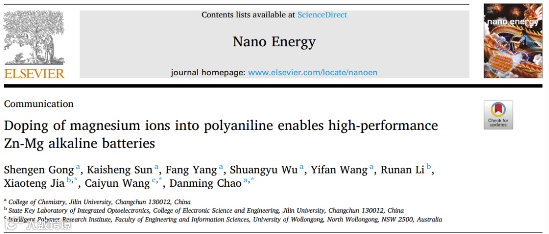在聚苯胺中掺入镁离子可实现高性能锌镁碱性电池