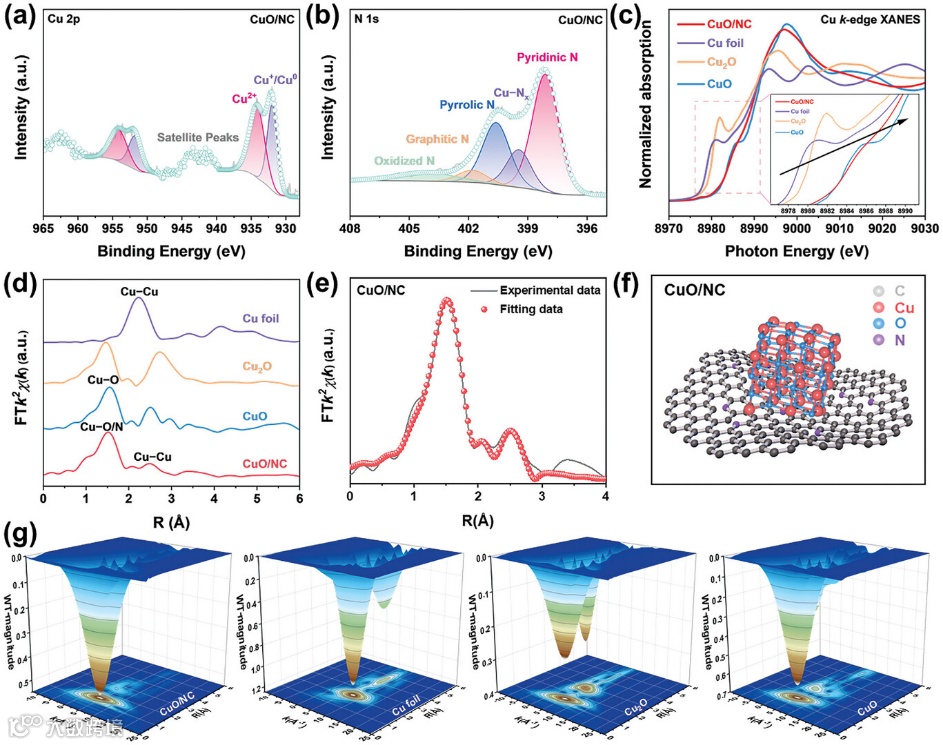 图2. CuO/NC的化学状态与配位环境表征