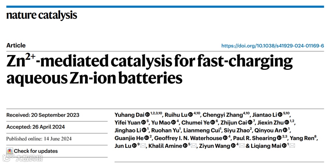 近日,武汉理工大学麦立强教授、奥克兰大学王子运副教授、阿贡国家实验室Khalil Amine研究员和浙江大学陆俊教授合作,在《Nature Catalysis》上发表了题为“Zn²⁺-mediated catalysis for fast-charging aqueous Zn-ion batteries”的论文。研究通过催化模型解释了水系锌离子电池(AZIBs)的快充异常现象,提出了通过水解产生和可逆吸附*OH的过程,实现了快充性能的突破。实验验证了理论计算的结果,表明Zn²⁺-VN组合在快充场景下表现出极佳的水解活性和快速的电化学储能能力。