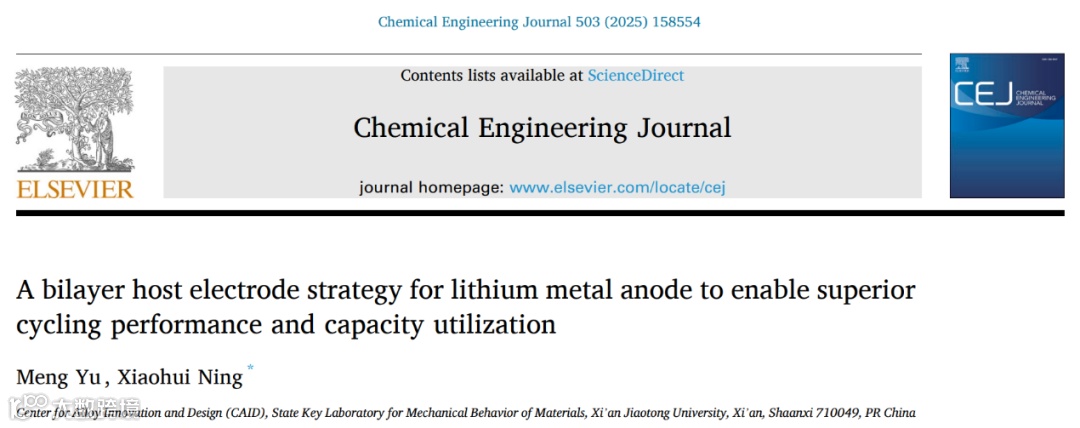锂金属负极双层宿主电极策略实现优异的循环性能与容量利用率
