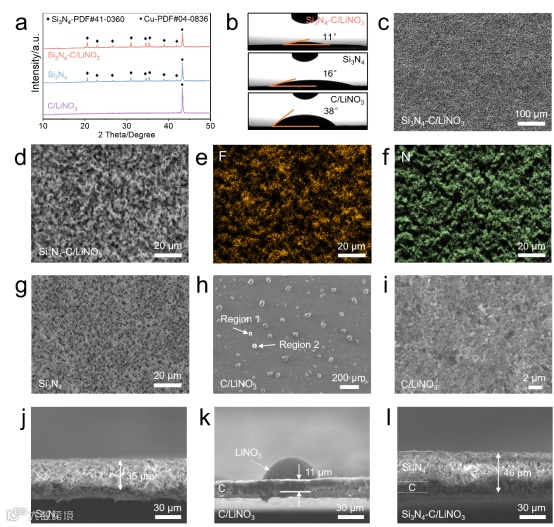 图2. Si3N4-LiNO3/C的结构与形貌分析