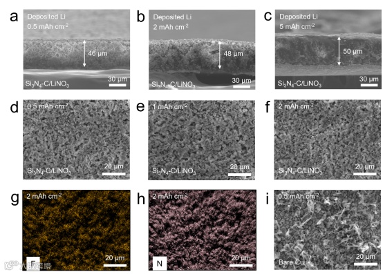 图3. Si3N4-LiNO3/C的锂沉积形貌分析