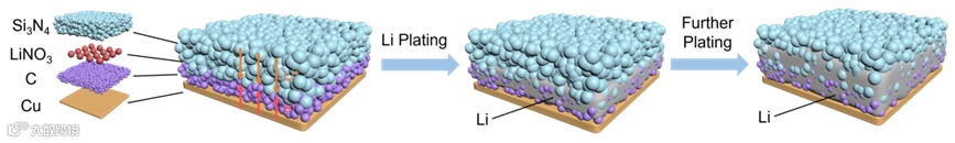 图1. Si3N4-LiNO3/C的结构与锂沉积示意图
