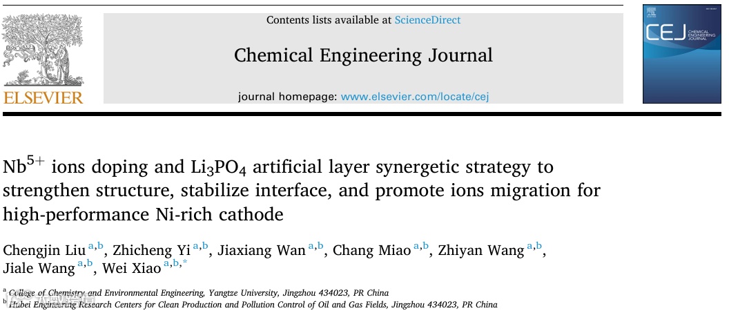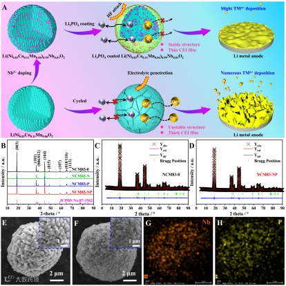 Nb5+掺杂与Li3PO4人工界面层的协同改性策略增强结构、稳定界面并促进离子迁移以获得性能优异的高镍正极材料