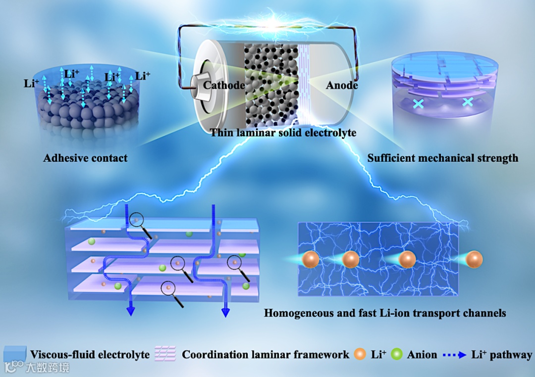 Robust and adhesive laminar solid electrolyte with homogenous and fast Li-ion conduction for high-performance all-solid-state lithium metal battery.