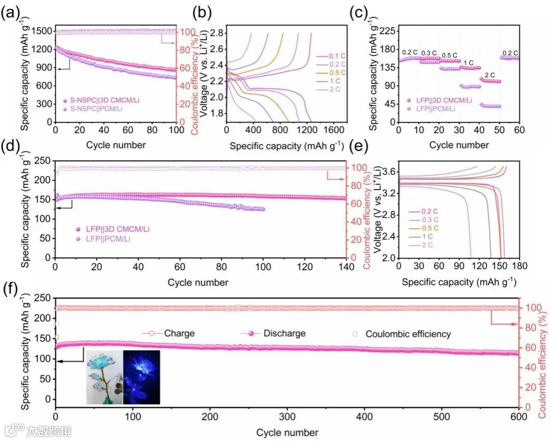 图3. S-NSPC||3D CMCM/Li 和LFP||3D CMCM/Li全电池的电化学性能研究。