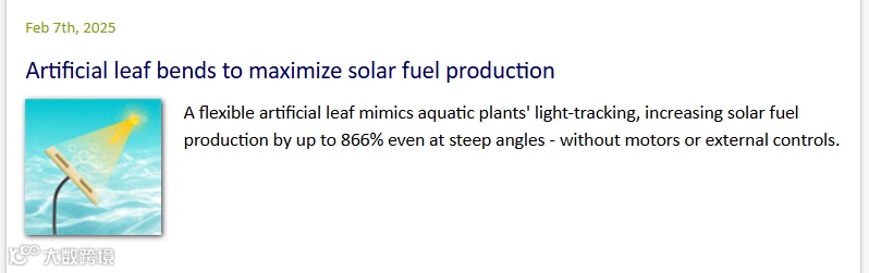 受自然启发,近日东华大学黄中杰教授团队与合作者报道了一种智能PEC系统,该系统能够通过自我约束的定向弯曲适应变化的光照条件,实现最大能量收集并完成稳定高效太阳能燃料生产。这样的成功归功于多种功能部件的创新集成设计,仿生水生植物中的多个关键部件(如细胞质、叶绿体和叶柄),及PEC电极制造和组装策略的创新。在45度和90度入射光下,此PEC体系的燃料生产效率分别提高了47%和866%。本研究提出了一种策略充分发挥太阳能燃料生产的潜力,助力智能和适应性能源转换生态的实现。相关研究以"Nature Inspired Phototropic Artificial Photosynthesis" 为题在Advanced Functional Materials期刊发表,并被国际著名纳米科技网站《Nanowerk》以“Artificial leaf bends to maximize solar fuel production”高亮介绍。