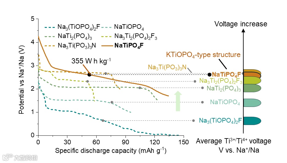 图1. 钠离子电池中各种钛基磷酸盐电极材料的工作电压和比容量对比