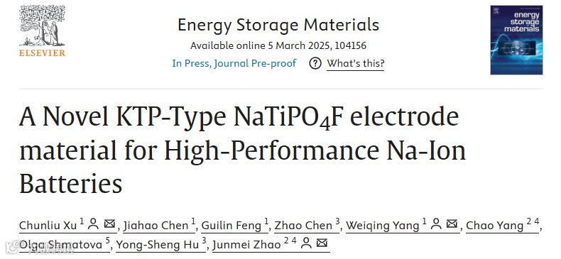 基于此,中科院过程所赵君梅研究员与西南交通大学的杨维清教授、徐春柳副研究员合作,在国际知名期刊Energy Storage Materials上发表题为“A Novel KTP-Type NaTiPO4F electrode material for High-Performance Na-Ion Batteries”的研究论文。通过将强电负性的F-离子的诱导效应与KTP型结构相结合,开发了一种新型钛基 NaTiPO4F 材料,其在 钠离子电池中获得约 137 mA h/g的可逆容量和约 355 W h/ kg的能量密度。各种原位表征结合理论计算揭示了 NaTiPO4F 电极中有利于 Na+ 离子扩散的动力学、可逆的 Ti3+/Ti4+ 氧化还原以及类固溶反应机制。当前的工作为低成本钛基磷酸盐电极在高性能钠离子电池中的设计和应用提供了启示。