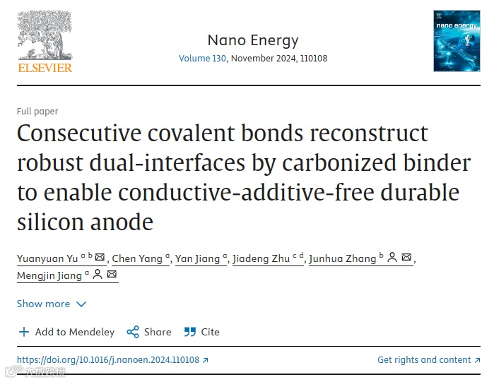 通过碳化导电粘结剂实现硅负极连续共价键重构稳健的双界面