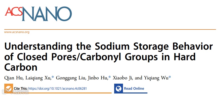 基于此,中南林业科技大学-长沙理工大学团队合作,在国际知名期刊ACS Nano上发表题为“Understanding the Sodium Storage Behavior of Closed Pores/Carbonyl Groups in Hard Carbon”的研究性论文。本研究以可再生栲胶为原料,通过热解调控策略制备出具有丰富可调闭孔和羰基的硬碳负极。