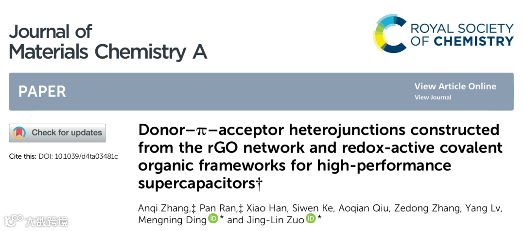 由rGO和氧化还原活性共价有机框架构建的D-π-A异质结用于高性能超级电容器