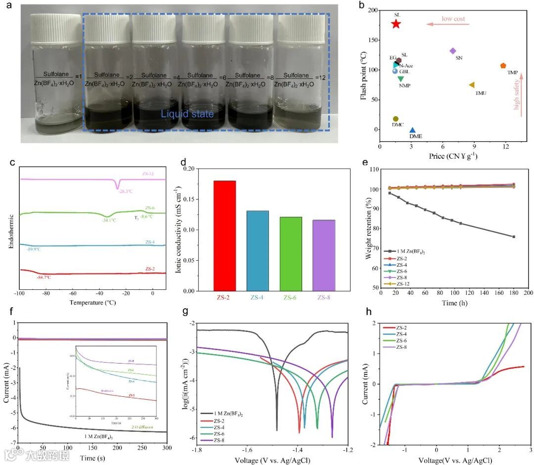 要点一:Zn(BF4)2/SL/H2O共晶电解液的理化性质表征