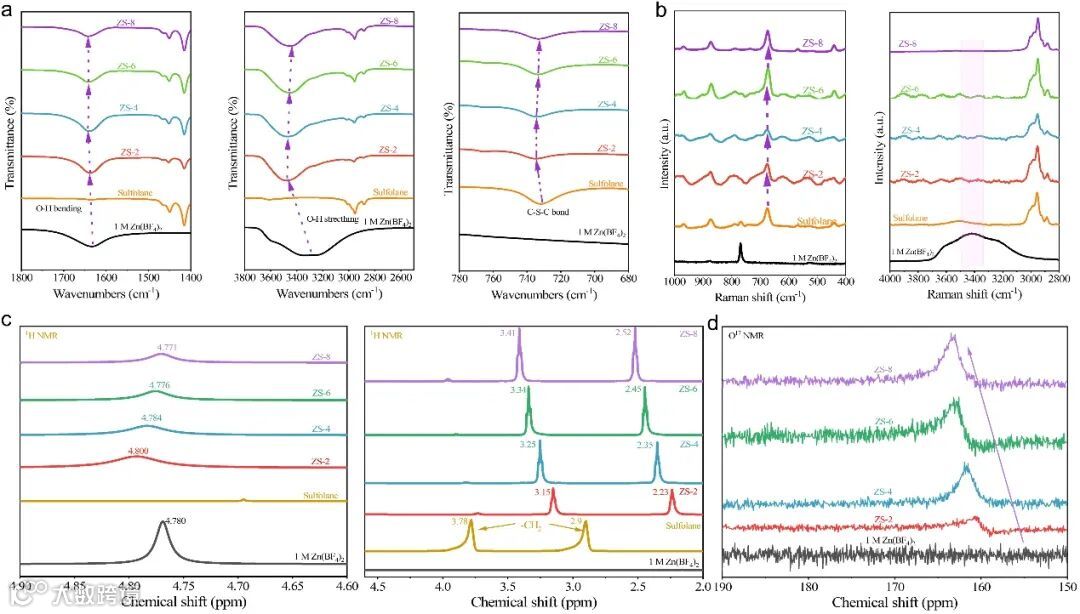 要点二:Zn(BF4)2/SL/H2O共晶电解液的光谱学分析