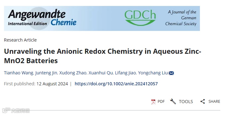 Tianhao Wang, Junteng Jin, Xudong Zhao, Xuanhui Qu*, Lifang Jiao, Yongchang Liu*, Unraveling the Anionic Redox Chemistry in Aqueous Zinc-MnO2 Batteries, Angew. Chem., Int. Ed.