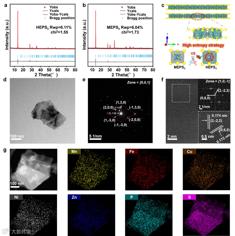 图二 高熵磷硫化合物的结构表征