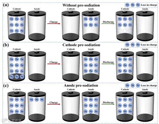 必要性:通过预钠化技术可以在SIB中预先储存一部分钠离子,以补偿活性钠的损失,从而解决全电池循环过程中的缺钠问题。更明显的是,在预钠化过程中形成的预SEI钝化层可以起到隔绝电解液、减缓材料体积膨胀和减少不可逆钠损耗的作用。