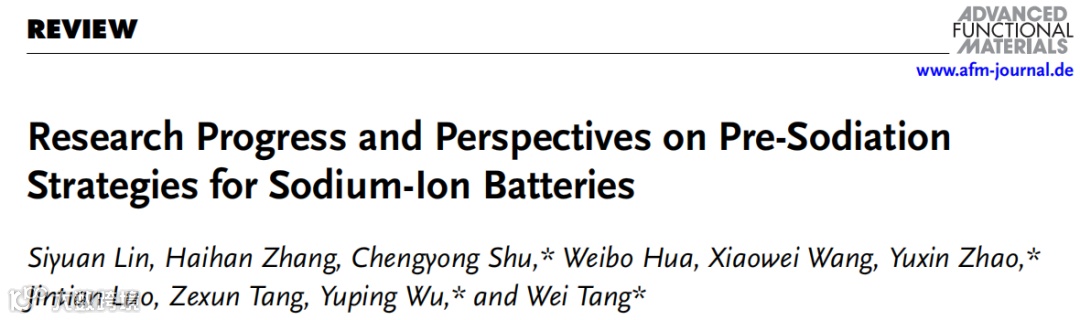 基于此,来自西安交通大学的唐伟教授、舒程勇副教授团队与中国石油天然气集团公司管材研究所赵宇鑫团队及东南大学的吴宇平教授合作,在国际知名期刊《Advanced Functional Materials》发表题为 “Research Progress and Perspectives on Pre-Sodiation Strategies for Sodium-Ion Batteries” 的综述文章。该综述文章围绕钠离子电池预钠化技术的最新进展,重点总结和讨论了几种关键的钠离子电池预钠化策略,以及预钠化的必要性和意义。同时也提出了目前该领域面临的挑战,并概述了预钠化技术的未来研究方向。