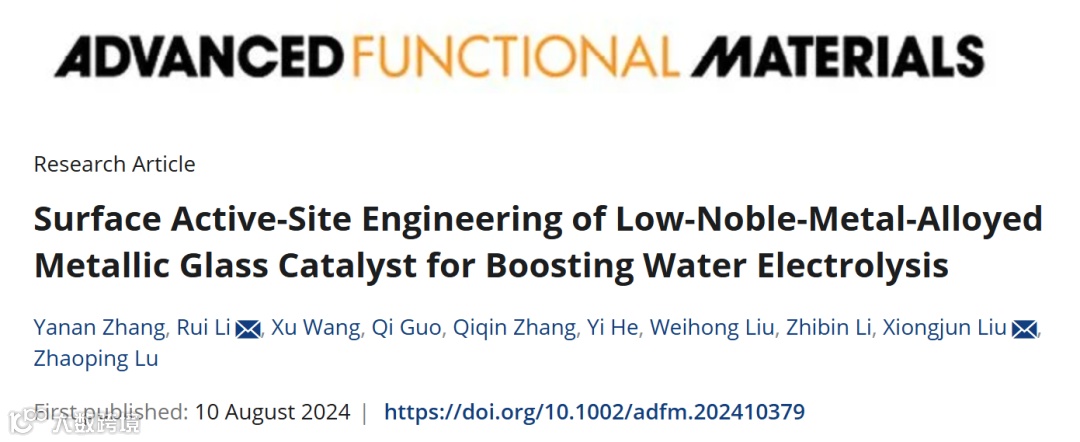 非晶合金催化剂设计新策略:表面活性位点工程助力低贵金属金属玻璃合金催化剂水电解