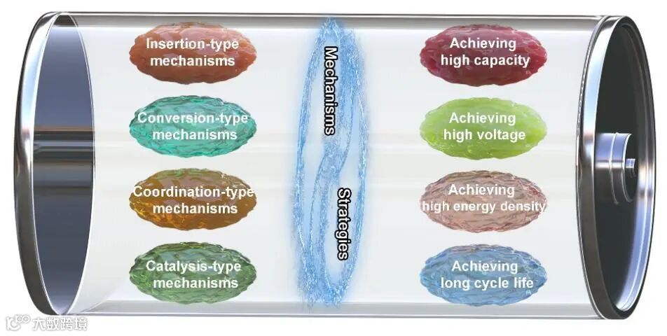 图1. 锌基电池系统中采用的储能机制和设计策略的总体概述图。