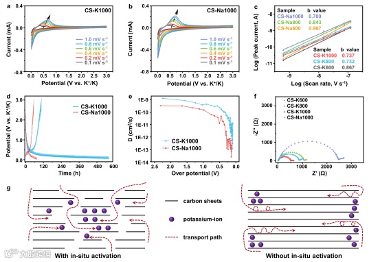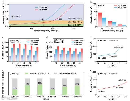 图3. 类石墨微晶炭的电化学储钾性能